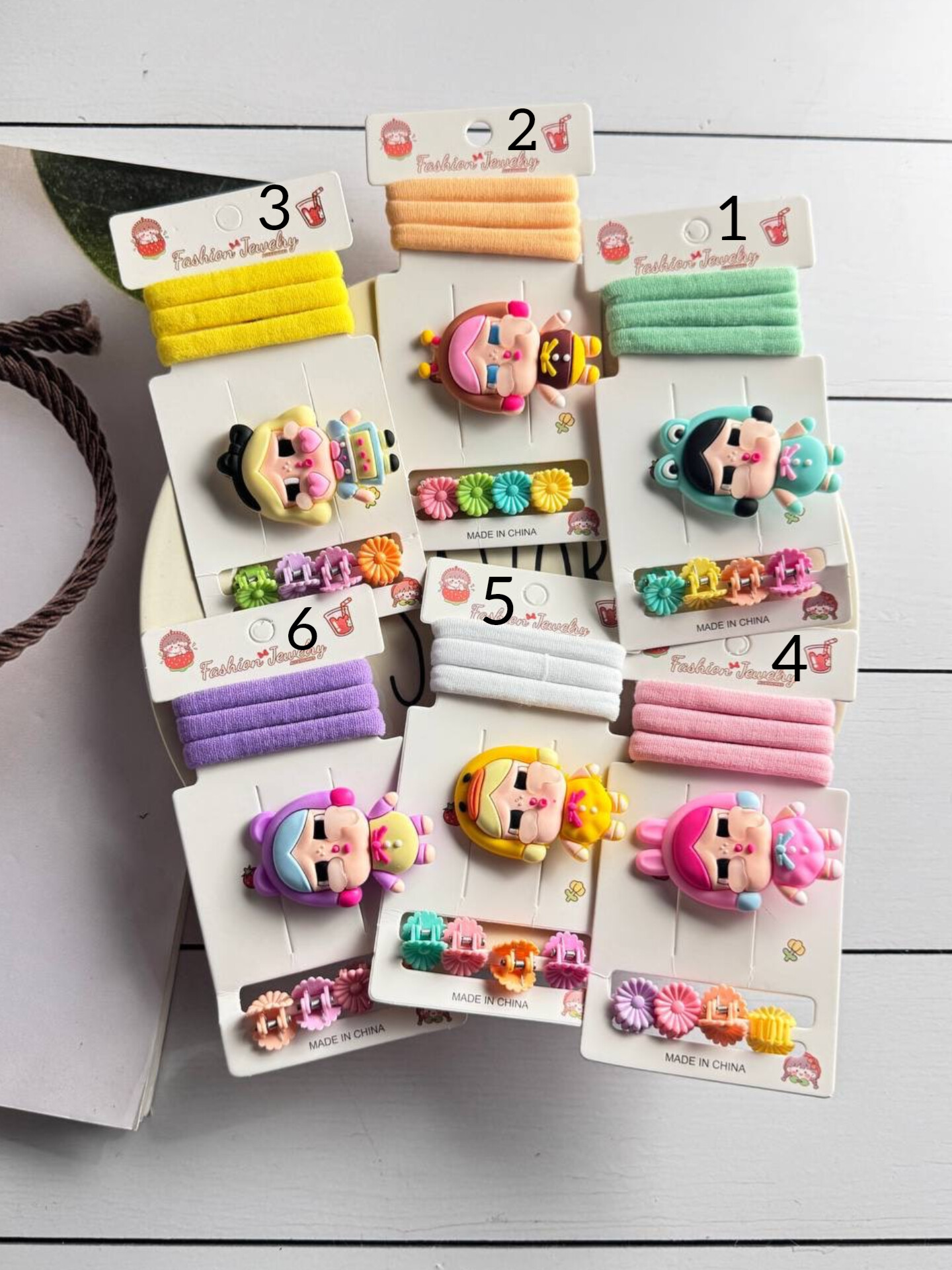 ۴عدد کلیپس بیبی/۳عدد کش موحوله ای/۱عدد گیره انبری عروسکی